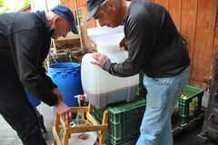 2016 kamen nochmals 7 Jungbäume dazu, und wir konnten eine Motorspritze beschaffen, um das biologische Pflanzenschutzmittel auszubringen. Die Anstrengungen des Vorjahres trugen Früchte, zusammen mit weiterem Obst aus der Nachbarschaft konnten wir ca. 200 Liter Most produzieren, der am Herbstfest reissenden Absatz fand. Die ersten Versuche mit der Produktion von gebrannten Wassern verliefen vielversprechend.
