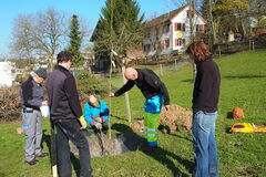 Wir sind 2015 als praktisch "Ahnungslose" gestartet und bauen unser Wissen seither ständig auf und lernen dazu. 2015 haben wir 6 neue Hoch- und Mittelstamm - Bäume gepflanzt und den Bestand an alten Obstbäumen mit Hilfe von Experten von der Wynegg durch einen beherzten Schnitt verjüngt. Am Herbstfest konnten wir die von Dani Fehlmann fachkundig restaurierte Mostpresse erstmals in Betrieb nehmen.